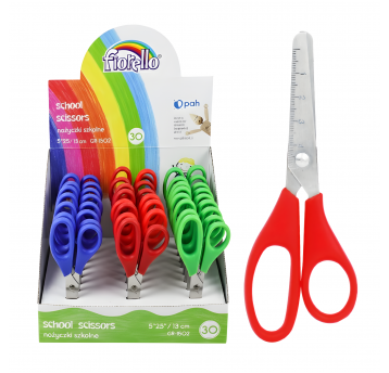 Nożyczki szkolne 13 cm z linijką, czerwone, Fiorello