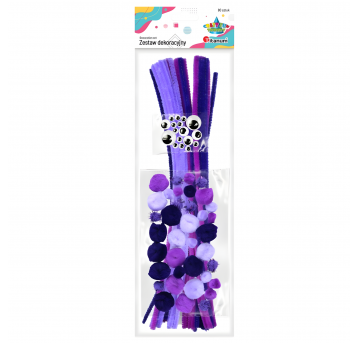 Druciki kreatywne + pompony + oczka, zestaw fioletowy, Titanum