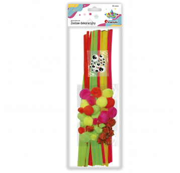 Druciki kreatywne + pompony + oczka, zestaw neonowy, Titanum
