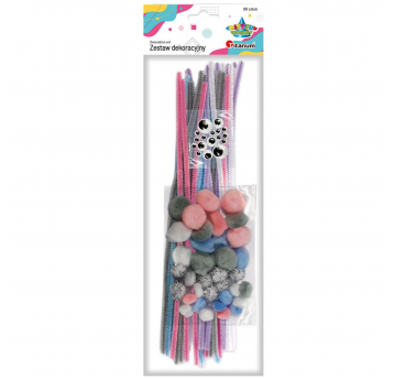 Druciki kreatywne + pompony + oczka, zestaw pastelowy, Titanum