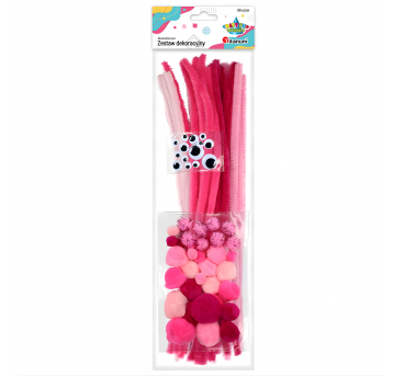 Druciki kreatywne + pompony + oczka, zestaw różowy, Titanum
