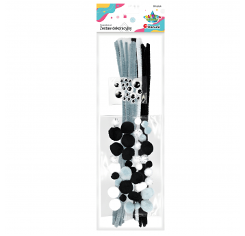 Druciki kreatywne + pompony + oczka, zestaw szary, Titanum