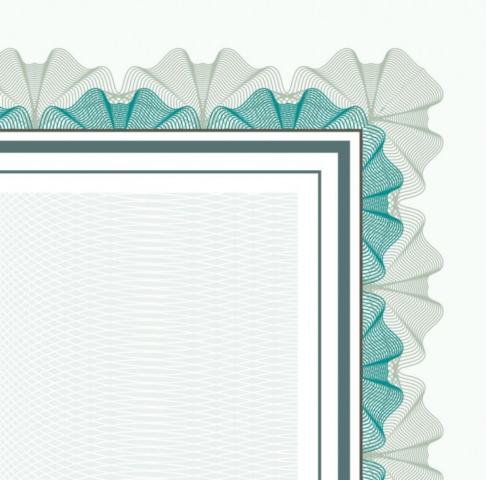 Bogato zdobiona zielona falbankowa ramka nadaje całości elegancki, niezwykle subtelny charakter i sprawia, że dokument prezentuje się efektownie zarówno podczas wręczenia, jak i po oprawieniu w ramę.