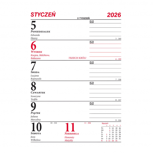 Kalendarz biurkowy Mini Merkurier B9 to praktyczny tygodniowy kalendarz stojący, idealny do codziennej organizacji zadań, spotkań i terminów zarówno w biurze, jak i w domu czy szkole.
