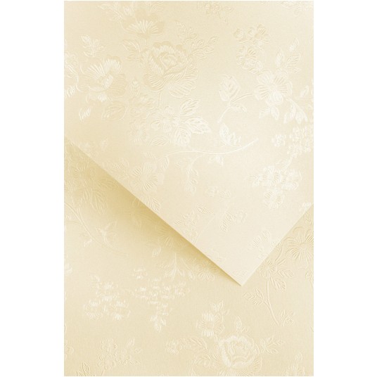 Karton Floral w kolorze kremowym to wyjątkowy papier ozdobny z subtelnym, kwiatowym tłoczeniem, które nadaje projektom elegancji i lekkości.