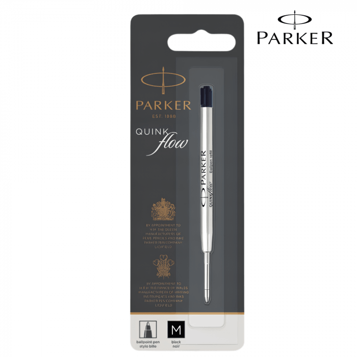 Wkład Parker Quinkflow M czarny to uniwersalny wkład do długopisów Parker, łączący wyraźną linię pisania z eleganckim kolorem.