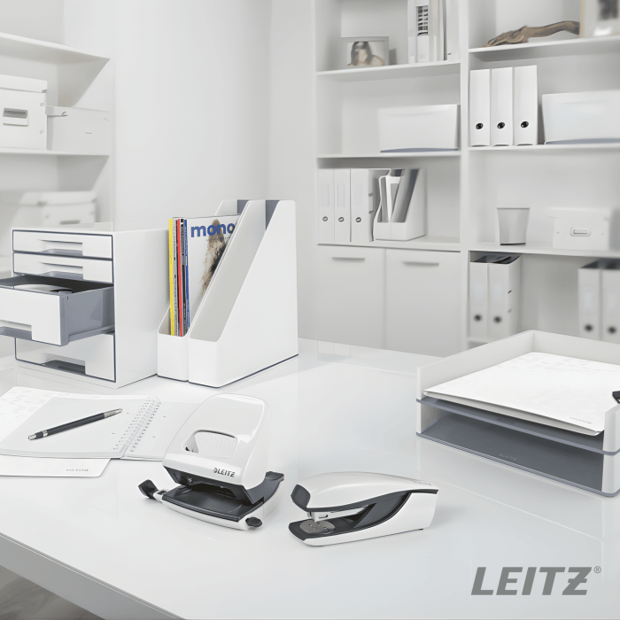 Urządzenie jest przystosowane do pracy z popularnymi zszywkami Leitz Power Performance P2 No.10, które gwarantują ostre krawędzie i trwałe łączenie dokumentów.