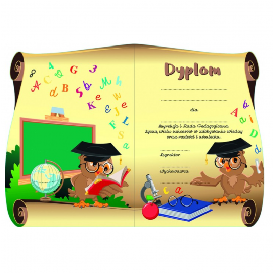 Dyplom Sowa to stylowy i reprezentacyjny blankiet, doskonały do wyróżniania uczniów, uczestników konkursów, zawodów czy wydarzeń szkolnych.