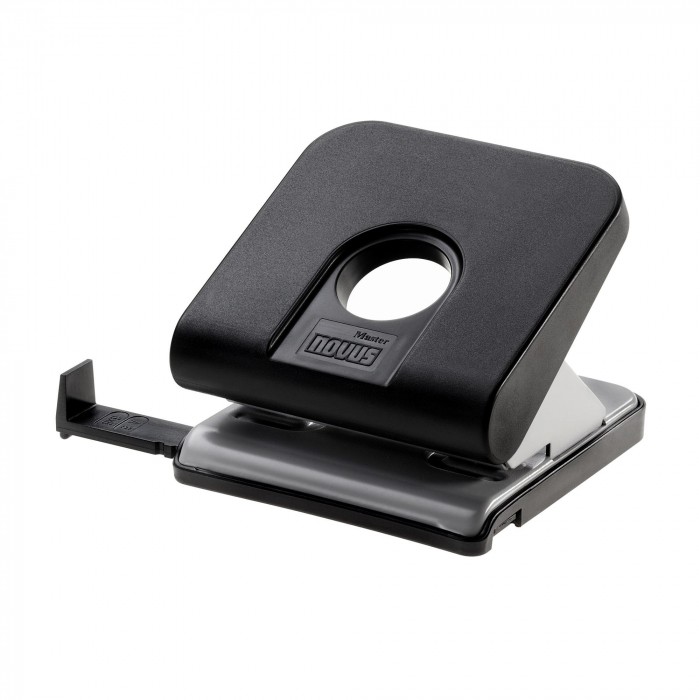 Klasyczny dziurkacz biurowy Novus Master. Wysuwany ogranicznik formatu z czytelnym wskaźnikiem rozmiaru. Antypoślizgowa podstawa, którą można do połowy wysunąć dla opróżnienia i łatwo zamknąć. Wykonany z metalu w obudowie z tworzywa sztucznego.Kolor czarny.