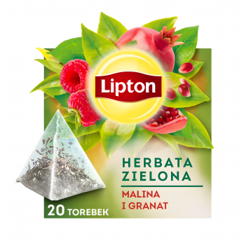 Herbata zielona Lipton, granat i malina, 20 torebek