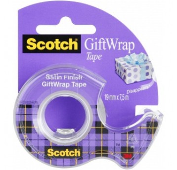 Taśma klejąca SCOTCH® Gift Wrap, do pakowania prezentów, na podajniku, 19mm, 6m, transparentna