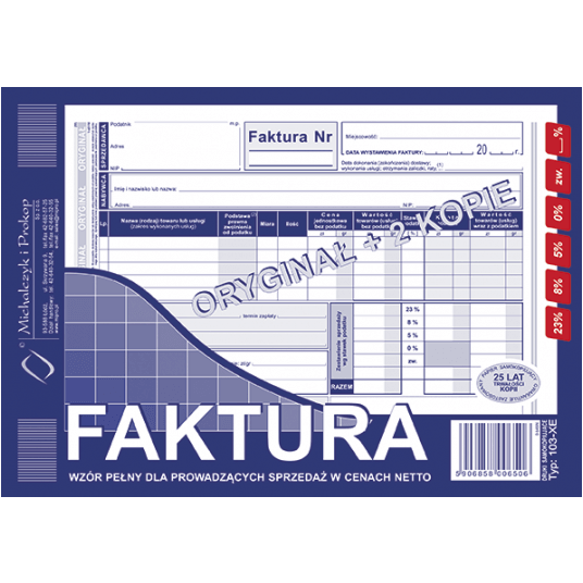 Druk Faktura VAT A5 oryginał+ 2 kopie Michalczyk i Prokop 103-XE