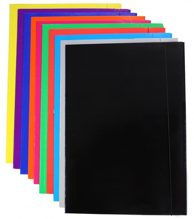 Wykonana z grubego makulaturowego kartonu 300 g/m2, jednostronnie barwionego i lakierowanego. Wyposażona w gumkę wzdłuż długiego boku. Posiada trzy wewnętrzne klapki zabezpieczające dokumenty przed wypadnięciem. Dostępna w 10 kolorach