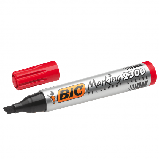 Marker permanentny BIC 2300 ze ściętą końcówką to praktyczne narzędzie do trwałego znakowania na różnych powierzchniach.
