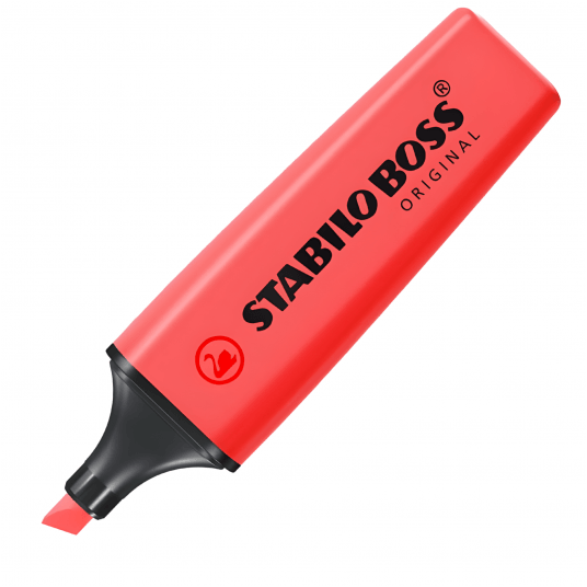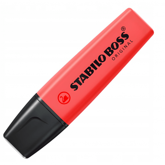 Textmarker czerwony Stabilo Boss Original 70/40 to intensywny kolor idealny do wyraźnych zaznaczeń i korekt.