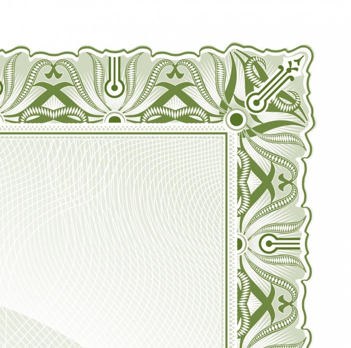 Bogato zdobiona zielona ramka nadaje całości elegancki, galowy charakter i sprawia, że dokument prezentuje się niezwykle efektownie zarówno podczas wręczenia, jak i po oprawieniu w ramę.