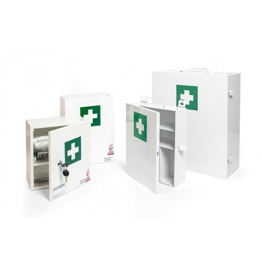 Apteczka HF072B to solidna metalowa szafka przeznaczona do przechowywania materiałów pierwszej pomocy: opatrunków, bandaży, środków dezynfekcyjnych itp.