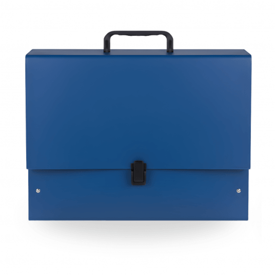 Solidna konstrukcja oraz ergonomiczna rączka zapewniają komfort użytkowania, a klasyczny granatowy kolor sprawia, że teczka doskonale sprawdzi się w biurze, szkole i archiwum.