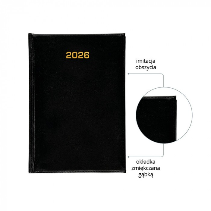 Okładka wykonana ze zmiękczanej gąbki, co nadaje kalendarzowi profesjonalny i estetyczny wygląd. Format A5 zapewnia wygodę przenoszenia, jednocześnie oferując dużo miejsca na wpisy.
