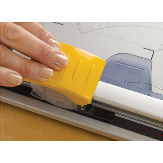 Wyposażony jest w technologię SafeCut™, specjalne kasety ostrzy, w których ostrze pozostaje schowane aż do momentu cięcia, co znacząco zwiększa bezpieczeństwo użytkowania.