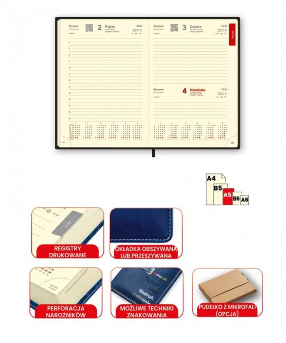 Kalendarz książkowy A5 360 stron KBR przeszywany bez registrów
