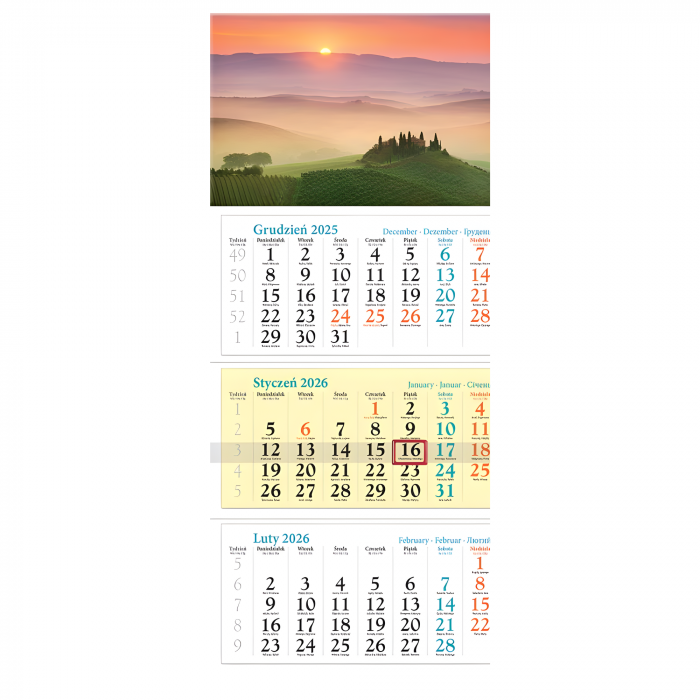 typ: kalendarz trójdzielny ścienny