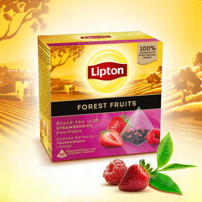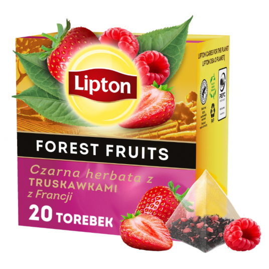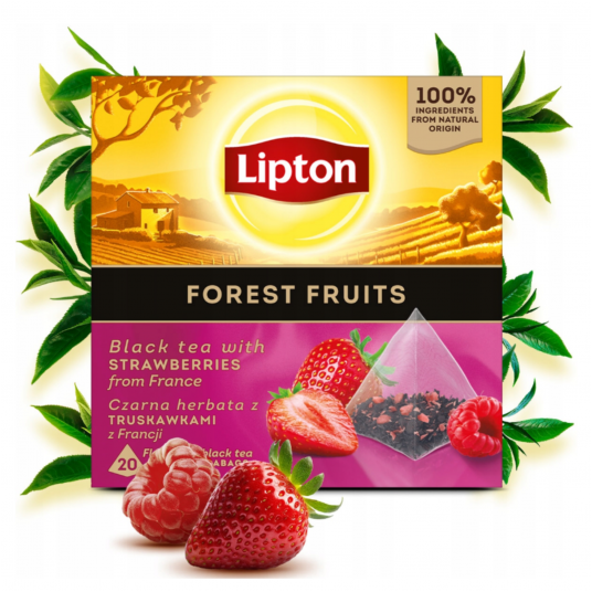 Herbata czarna Lipton o smaku owoców leśnych z nutami Cejlonu oraz obłędnie pachnącymi truskawkami z Francji, w praktycznych torebkach to doskonały wybór na każdą porę dnia.
