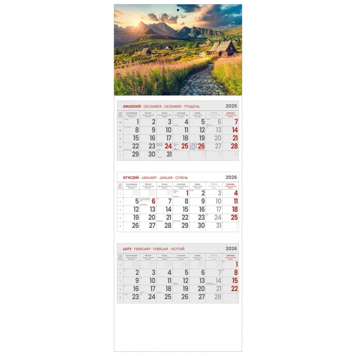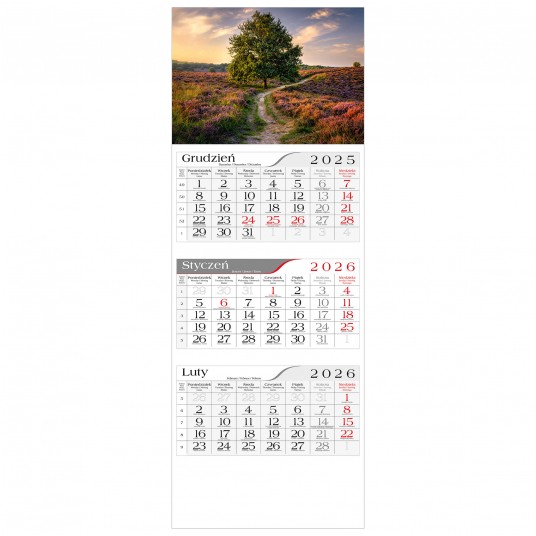 Trzy częściowe kalendarium sprawia, że wszystko masz pod ręką. Przejrzysty układ wyróżniają czytelne daty i wyróżnione niedziele/święta. Pasuje zarówno do domu, biura, szkoły czy też firmy.