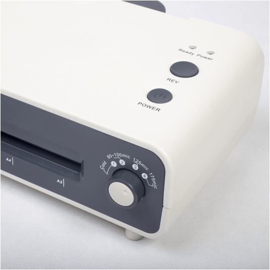 Urządzenie oferuje laminowanie na gorąco i na zimno, a dzięki funkcji cofania (reverse) pozwala bezpiecznie usunąć błędnie włożony arkusz.