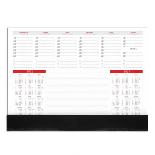Podkład na biurko Biuwar wyróżnia się solidnym wykonaniem oraz estetycznym designem, a listwa w biuwarze ułatwia przewracanie stron i utrzymanie kalendarza w porządku.