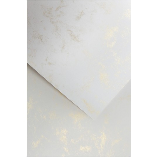Biały arkusz ozdobiony jest wzorem w złotym marmurowym motywie, co dodaje mu prestiżu i elegancji.