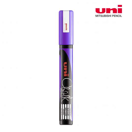 Marker kredowy Uni PWE-5M Chalk to wszechstronne narzędzie do tworzenia wyraźnych i estetycznych napisów na różnych powierzchniach.