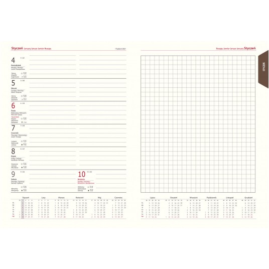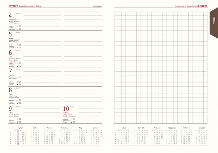 układ: tygodniowy (1 tydzień na 2 stronach)