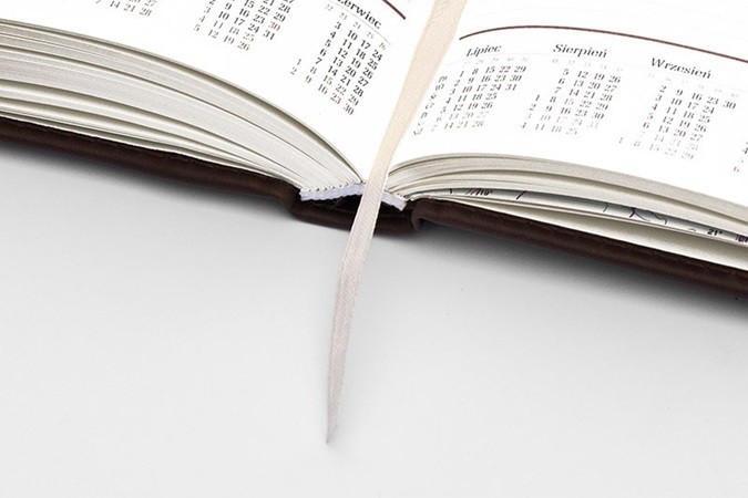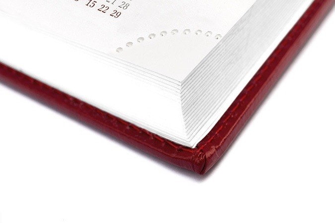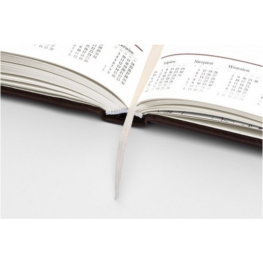 Okładka wykonana jest z wysokiej jakości materiału skóropodobnego o delikatnej fakturze, nadającej kalendarzowi elegancki charakter.