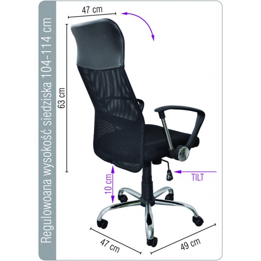 mechanizm TILT: umożliwia swobodne kołysanie oraz blokadę w pozycji do pracy, dzięki czemu można komfortowo odpocząć lub skupić się na zadaniach