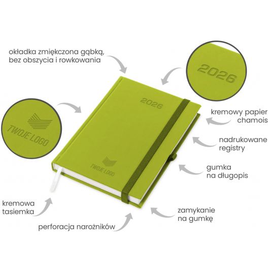 Kalendarz dzienny A5/360 Porcelana z gumką