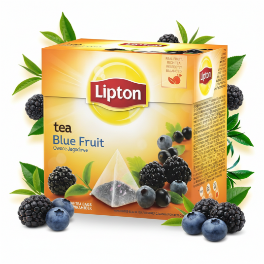 Herbata Lipton to klasyczna czarna herbata o smaku jagodowych owoców, która łączy w sobie słodki smak jagód, jeżyn i malin dopełniając kwaśną czarną porzeczką.