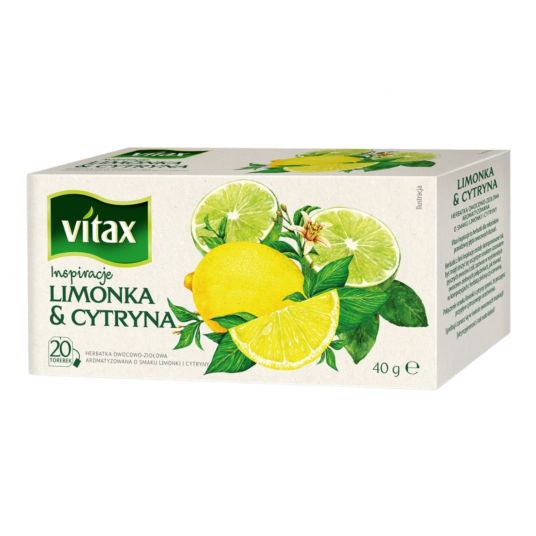 Herbata Vitax Inspirations o smaku limonki z cytryną to aromatyczna seria wysokiej jakości herbat w praktycznych torebkach, które pozwalają w prosty sposób przygotować pełen smaku napar o wyjątkowym aromacie.
