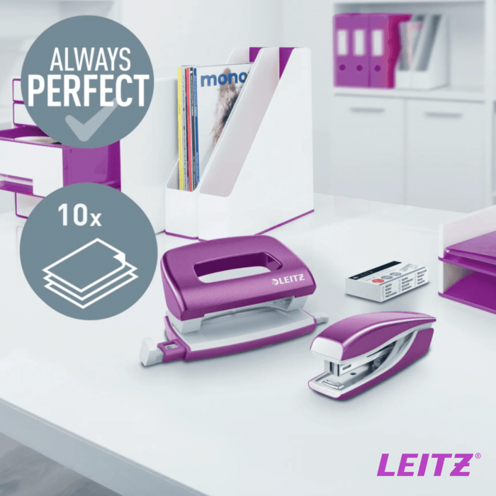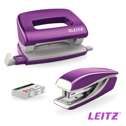 Zszywacz + dziurkacz metalowy, Leitz WOW Mini (fioletowy)