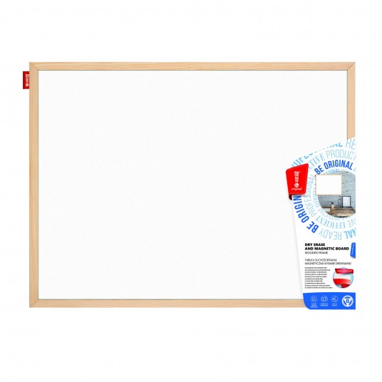Tablica o wym. 40x30 cm w ramie drewnianej, sosnowej o szer.20 mm i grub.16 mm. Powierzchnia tablicy wykonana ze stali lakierowanej w kolorze białym o właściwościach suchościeralnych i magnetycznych. Tył tablicy - pilśnia. Montaż tablicy w pionie lub poziomie. W zestawie komplet gwoździków i haczyków. Wzmocnienia: pośrodku z tyłu tablicy dodatkowa listwa drewniana i zszywki. Tablica przeznaczona do pisania markerami oraz zawieszania kartek za pomocą magnesów. Produkt do użytku wewnętrznego. Tablica doskonale sprawdza się jako nośnik informacji zarówno w biurze, szkole, jak i w domu. Tablica ułatwia pracę i przekaz informacji podczas wykładów akademickich, lekcji szkolnych, szkoleń, konferencji i spotkań biznesowych.