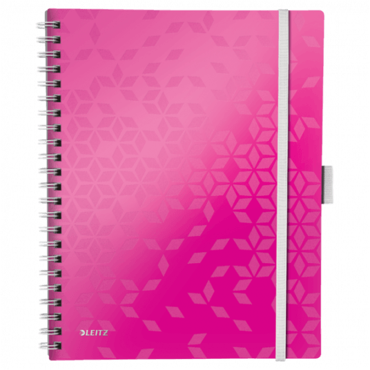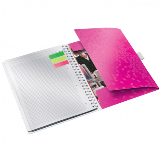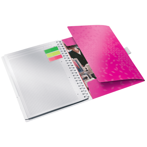 - wysokiej jakości kołonotatnik wykonany z polipropylenu, dostępny w żywych kolorach WOW - lekki, z kartkami obracanymi na spirali, do robienia notatek w biurze i poza nim - zintegrowana z tylną okładką 3-skrzydłowa teczka do przechowywania większej ilości luźnych dokumentów - 3 wyjmowane przekładki do efektywnego porządkowania notatek oraz karta ze spisem zawartości ułatwiająca ich przeglądanie - uchwyt na długopis lub ołówek, aby zawsze były pod ręką - 80 kartek papieru o gramaturze 80 g/m2 , z certyfikatem FSC® - wysokiej jakości biały papier z satynowym wykończeniem i dziurkami umożliwiającymi wpinanie do segregatora - zamknięcie na gumkę zabezpieczające kartki przed wypadaniem