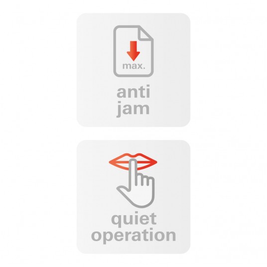 Cicha praca (~58 dB) sprawia, że niszczarka nie zakłóca otoczenia, właściwe rozwiązanie dla środowisk wymagających ciszy.