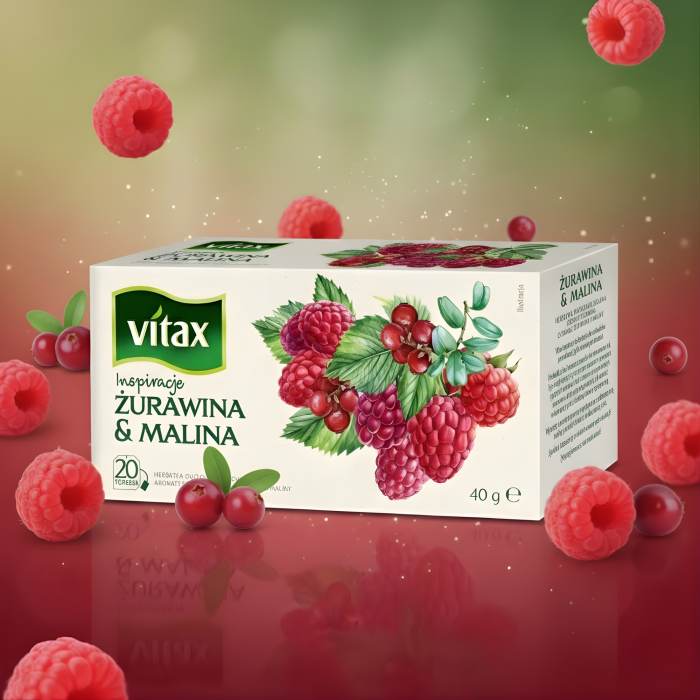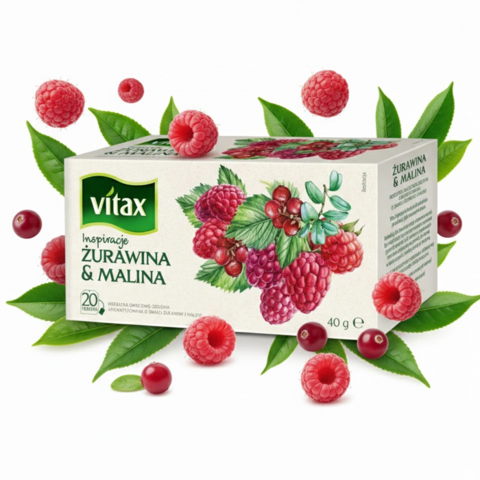 Herbata Vitax Inspirations o smaku żurawinowo - malinowym to aromatyczna seria wysokiej jakości herbat w praktycznych torebkach, które pozwalają w prosty sposób przygotować pełen smaku napar o wyjątkowym aromacie.