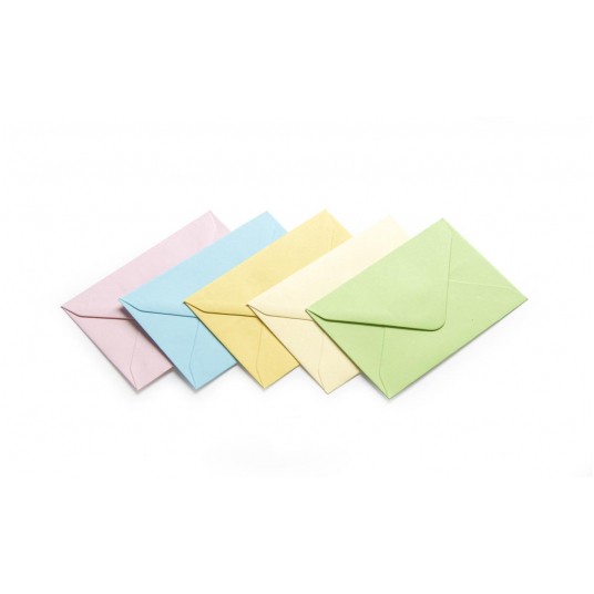 Koperty 80×160 mm w mixie 5 kolorów pastelowych to zestaw niewielkich kopert w delikatnych pastelowych odcieniach, które dodadzą projektom rękodzielniczym subtelnego, eleganckiego charakteru.
