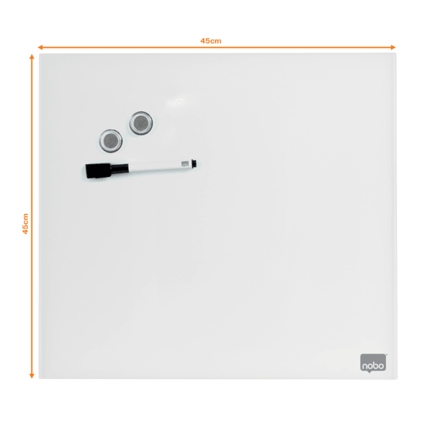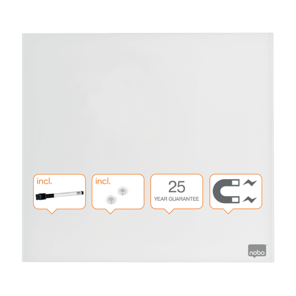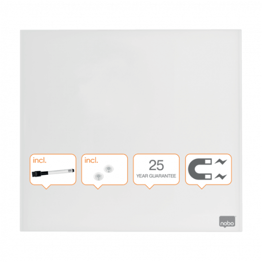 Szklana, bezramowa tabliczka Nobo łącząca stylowe wzornictwo z funkcjonalną powierzchnią suchościeralną to doskonałe narzędzie do zapisywania notatek. Magnetyczna szklana powierzchnia zapewnia najwyższą odporność na plamy i zadrapania, a niewielki rozmiar idealnie sprawdzi się do zapisywania notatek czy wiadomości podczas pracy w domu i w biurze. Po prostu: zapisz coś, zetrzyj i napisz kolejną notatkę. W zestawie z markerem