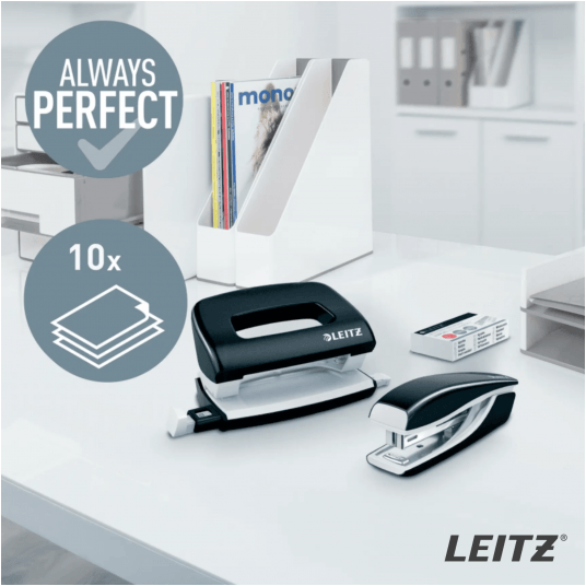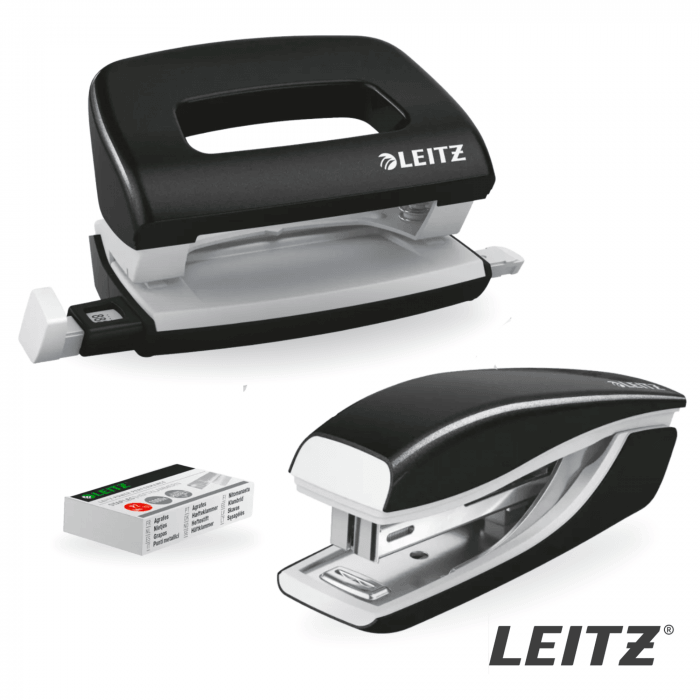 Zszywacz + dziurkacz metalowy, Leitz WOW Mini (czarny)