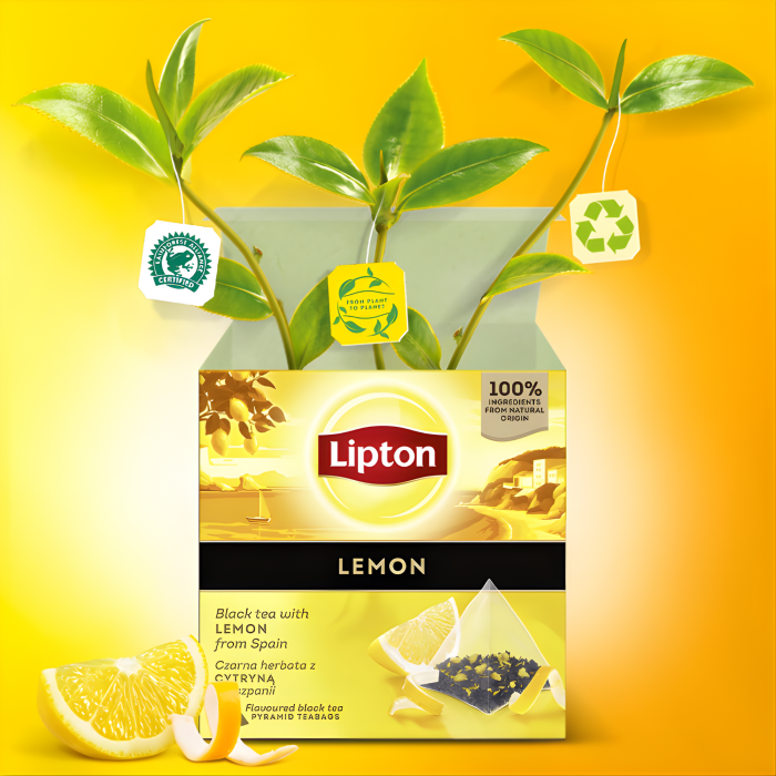 Dostępna w formie wygodnych piramidek, herbata Lipton szybko i łatwo się parzy, uwalniając charakterystyczny aromat, który orzeźwia i dodaje energii na każdy dzień.