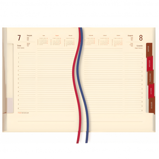 Kalendarz został skonstruowany z myślą o prostocie, praktyczności i estetyce. Zastosowany układ dzienny (1 dzień ma stronę) zapewnia dużo miejsca na najważniejsze zapiski. Stylowa, klasyczna, a zarazem trwała oprawa skóropodobna.