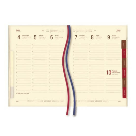 Planowanie obowiązków zawodowych i prywatnych jest dużo łatwiejsze dzięki dużemu formatowi A4 oraz przejrzystemu układowi tygodniowemu.