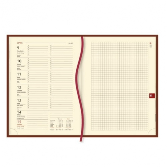 Układ tygodniowy pozwala szybko przeglądać Twoje plany i zadania. Jasny, kremowy papier i druk w dwóch kolorach ułatwiają czytelność.